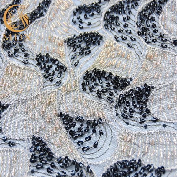 Gorgeous Beaded Lace Fabric Sequin Polyester Nylon Mesh Fabric For Evening Dress Images |